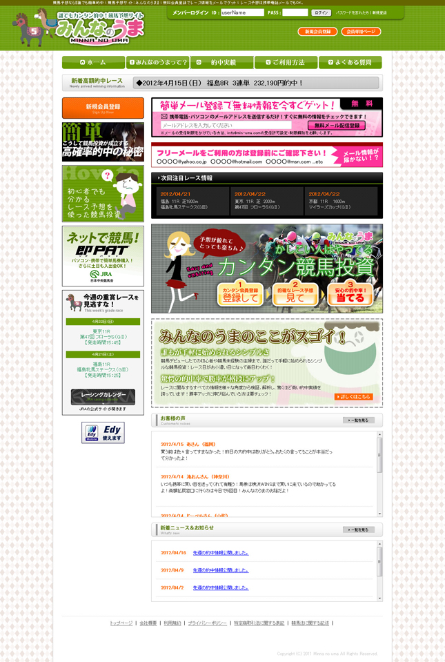 この『誰でも簡単的中!競馬予想サイト みんなのうま』です。